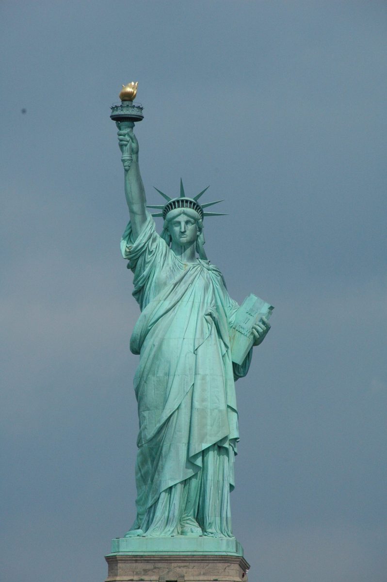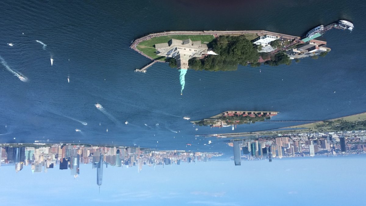 Liberty Island et Elis Island devant Manhattan, New York, NY